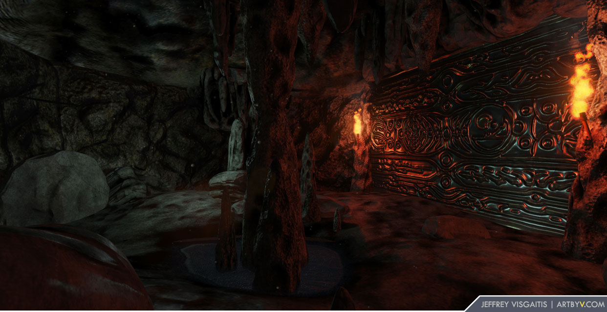 This environment was built in Unreal 4. My main goal was to learn how to contruct a scene, import meshes, create shaders and collision volumes, and add basic particle fx and lighting. This environment was based on a concept piece done by Jason Rosenstock.